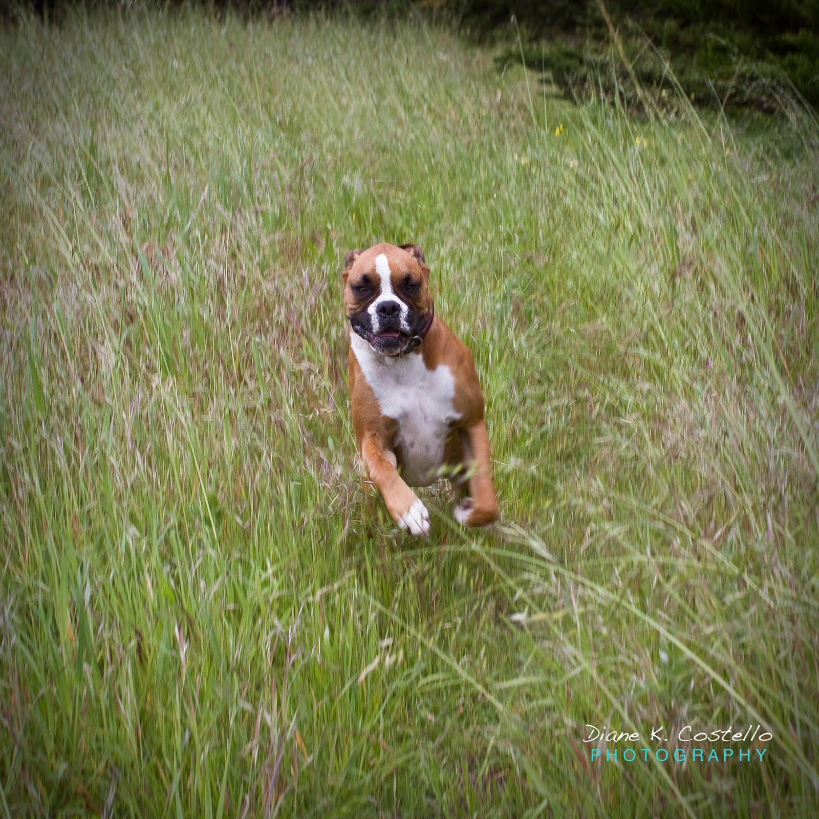 Gromit and I went for a nice (steep) walk with our friends this morning, then I had to run some errands while Gromit guarded the house...When I finally made it home, we had just enough time to do one large field loop. The sky was getting really dark and gloomy and you could tell it was going to start pouring any minute. Well, we made it just in time. Grommie was bookin'